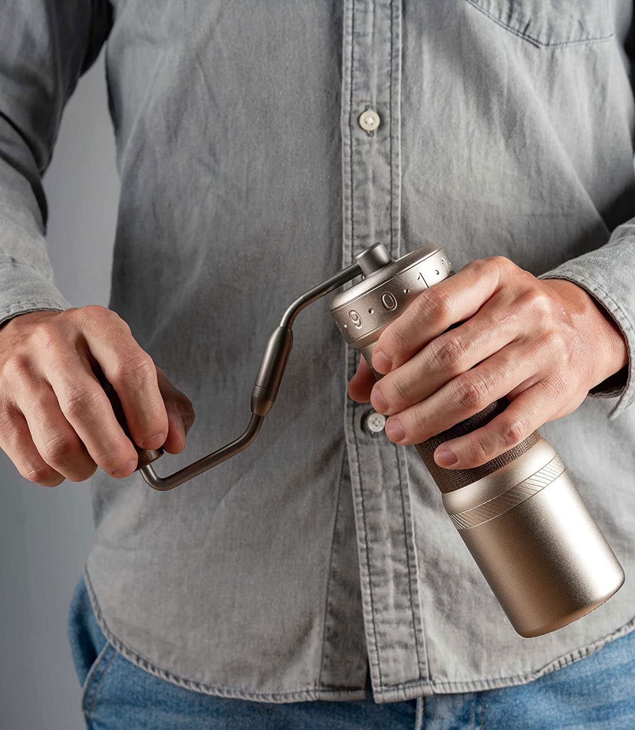 O râșniță de cafea manuală de înaltă calitate, de la renumitul producător 1Zpresso K-Ultra, cu mâner pliabil și un mecanism de măcinare și mai sofisticat.