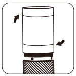 Deșurubați râșnița pentru a curăța piesele principale. Prindeți recipientul de colectare cu o mână și deșurubați corpul în sensul acelor de ceasornic cu cealaltă mână. Asigurați-vă că nu a rămas zaț de cafea pe fire și Strângeți corpul în sens invers acelor de ceasornic pentru reasamblare. |