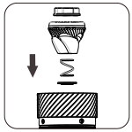 Puneți componentele înapoi în secvența corectă: capacul inferior al rulmentului (partea convexă orientată spre rulment), arc, freză și rotiță de reglare. |