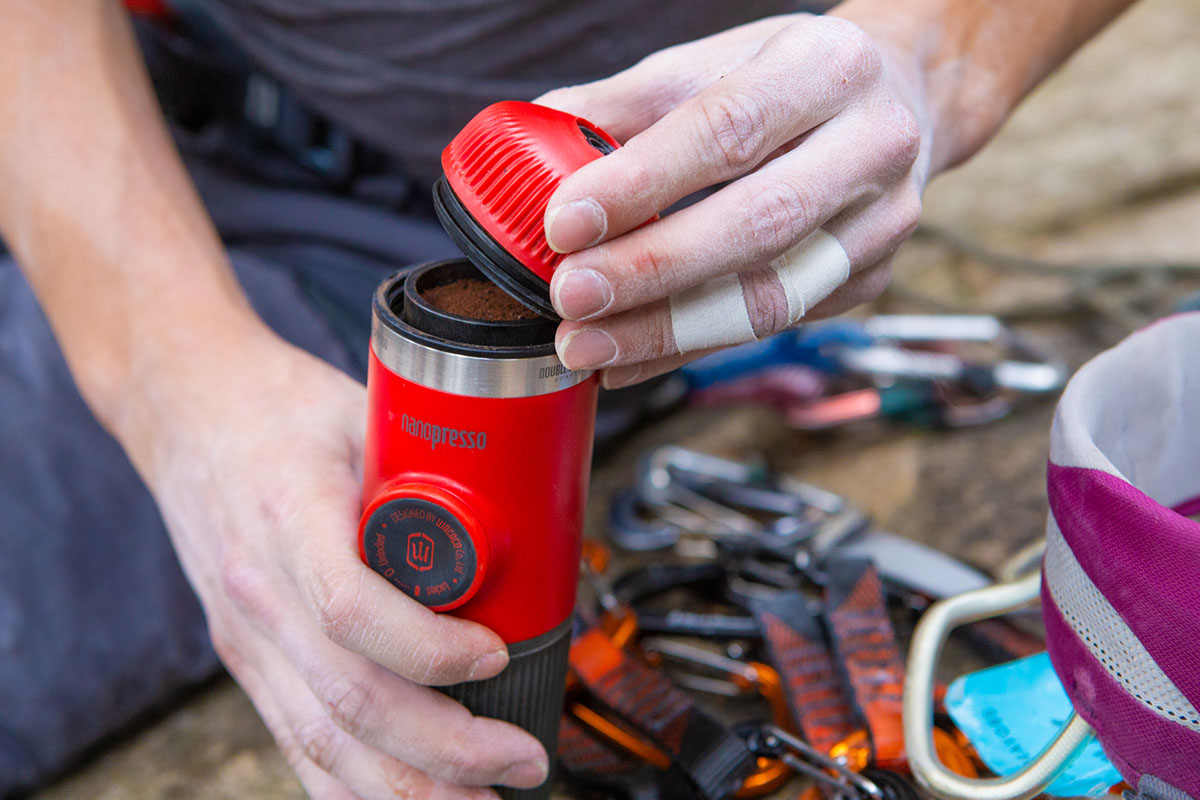 Aparat de cafea portabil Wacaco Nanopresso (red patrol) + carcasă moale