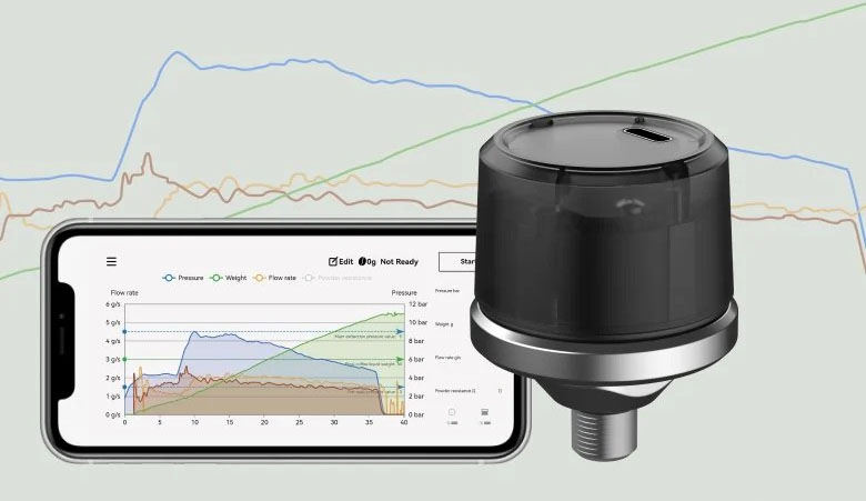 Vrei să vezi atât presiunea, cât și debitul apei într-un singur grafic? Conectează senzorul la cântarul digital BOOKOO și obține control absolut asupra fiecărui parametru al espresso-ului tău.