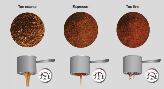 - Daca cafeaua este macinata prea grosier, aceasta va oferi putina rezistenta si nu se va putea crea presiunea necesara.