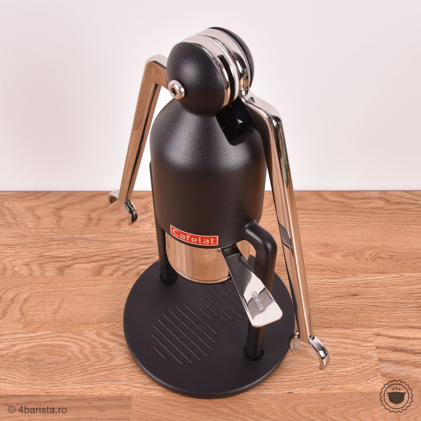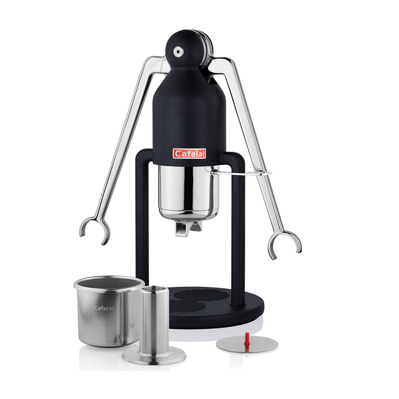 Robotul este un aparat de cafea manual compact, de înaltă calitate, care prepară espresso autentic . Construcția este complet lipsită de plastic și componente electronice - baza este fabricată din oțel inoxidabil , completată doar de elementele necesare din silicon alimentar sigur (garnituri și suport de filtru din oțel inoxidabil).