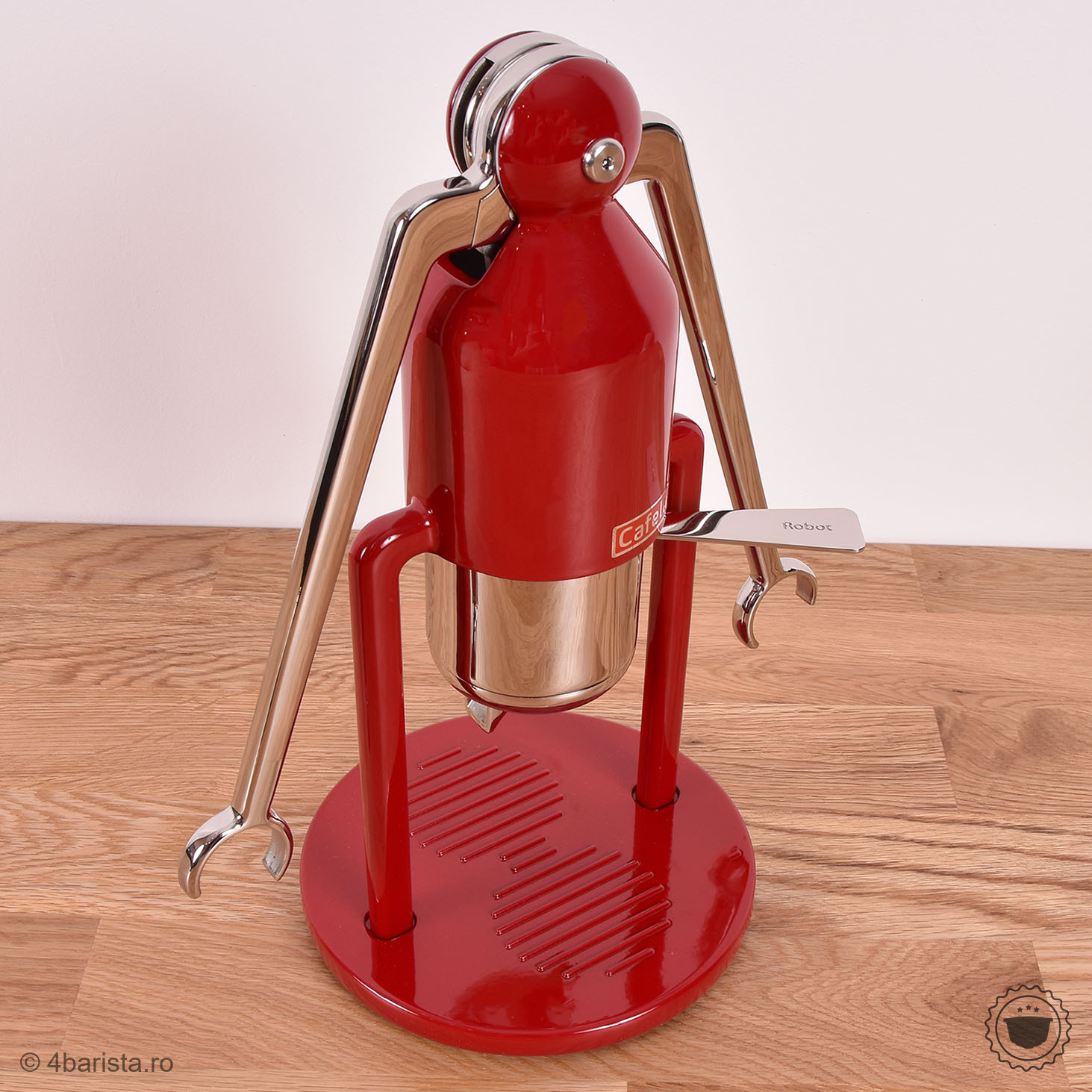 Robotul este un aparat de cafea manual compact, de înaltă calitate, care prepară espresso autentic . Construcția este complet lipsită de plastic și componente electronice - baza este fabricată din oțel inoxidabil , completată doar de elementele necesare din silicon alimentar sigur (garnituri și suport de filtru din oțel inoxidabil).
