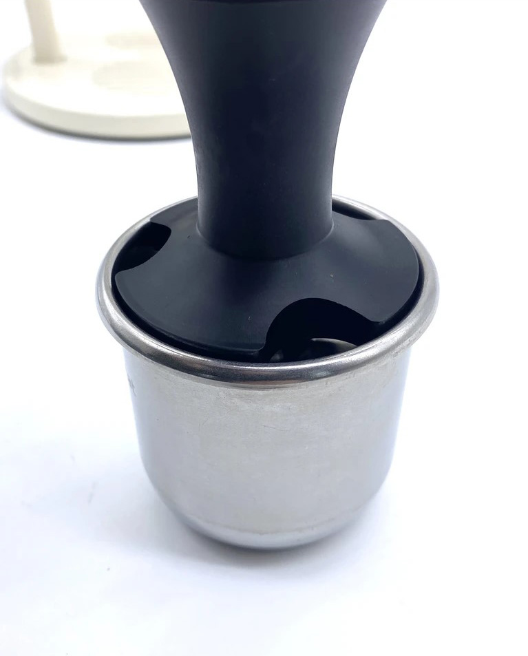 Tamper fabricat cu precizie, potrivit pentru coșul adânc al aparatului de cafea Cafelat Robot. Înălțimea tamperului este reglabilă prin înșurubare.