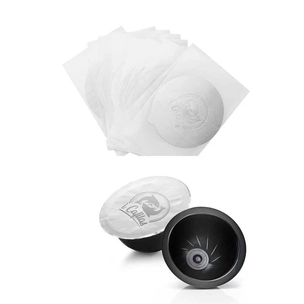 Aceste capace adezive din aluminiu vă permit să reutilizați capsulele curățate, de unică folosință, pentru Nespresso Vertuo®.