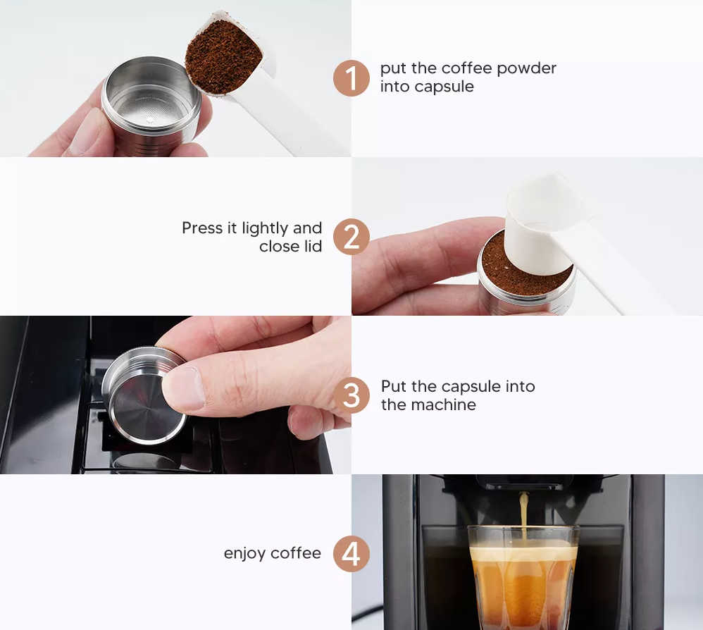 Cu ajutorul acestei capsule reîncarcabile ECO, nu veți mai fi limitat în alegerea cafelei. În plus, capsula reîncărcabilă are grijă de mediul înconjurător și economisește bani.