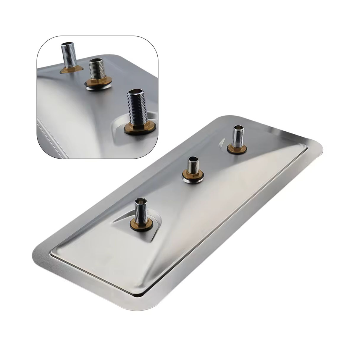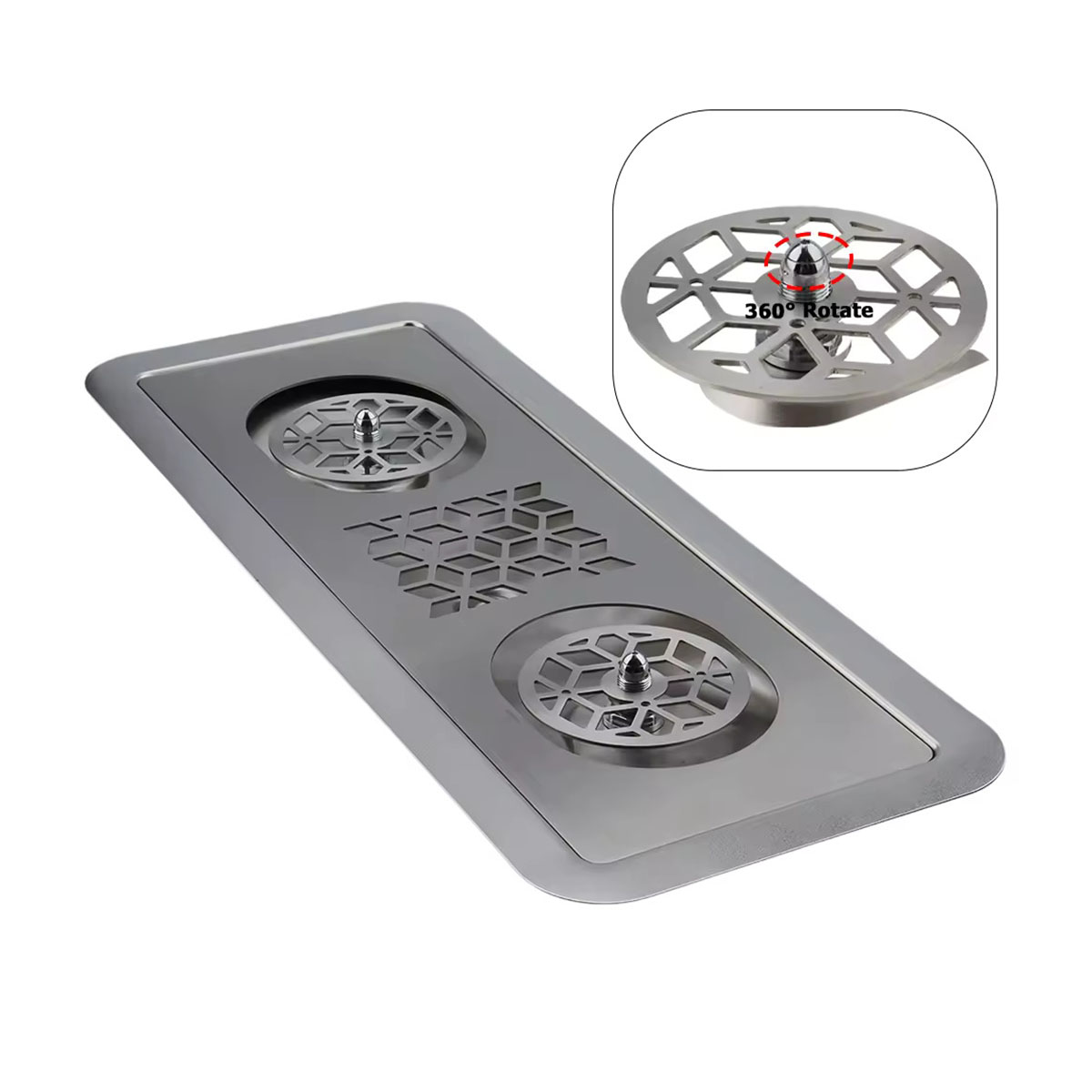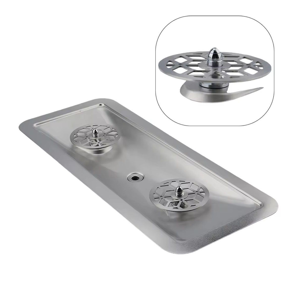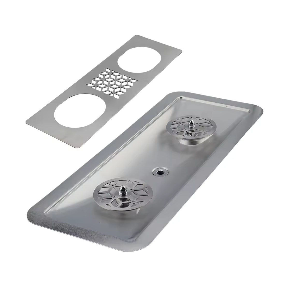 Dimensiuni : 60 x 24 x 3 cm. Greutate : 2200 g. Conexiune furtun : 1/2". Dimensiuni maxime cupe : 11 x 14 cm. Grosimea tavii de picurare: 2 mm.