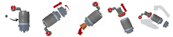 Urmați pașii de mai jos. Curățarea cafetierei Flair 2GO trebuie făcută doar cu apă. Nu este nevoie de săpun, deoarece acesta poate afecta gustul espresso-ului. Nu puneți niciodată componentele cafetierei GO în mașina de spălat vase.