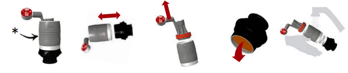 1. Ridicați încet maneta și scoateți capul de infuzare asamblat de pe cadrul GO, prindeți siliconul acolo unde este indicat mai sus.