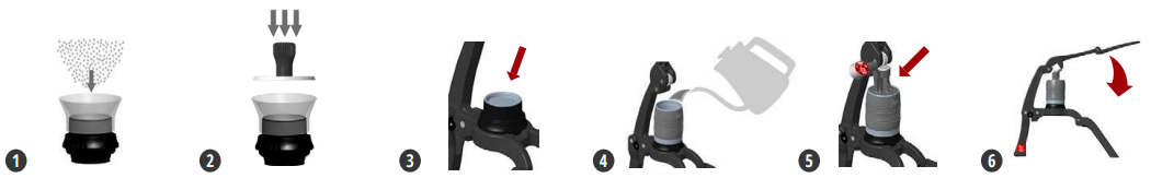 4. Adăugați cilindrul și umpleți cu apă fiartă - Adăugați cilindrul fără preîncălzire în Portafilter, apoi umpleți cu apă clocotită. Nu depășiți linia de umplere maximă.