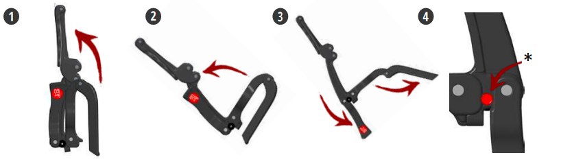 4. Eliberați dispozitivul apăsând butonul roșu - Eliberați dispozitivul de blocare apăsând butonul roșu, apoi inversați pașii pentru a plia dispozitivul Flair 2GO.