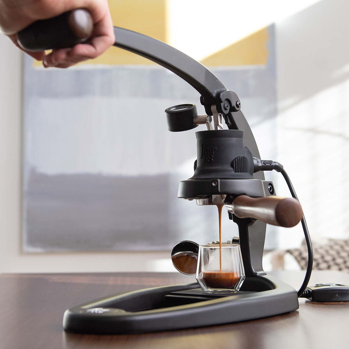 Nou de la Flair, aparat de cafea profesional cu portafiltru de 58 mm, construcție mai robustă și preîncălzire electrică reglabilă. Datorită noului design cu pârghie în formă de T, puteți crea o presiune mai mare cu mai puțină forță.
