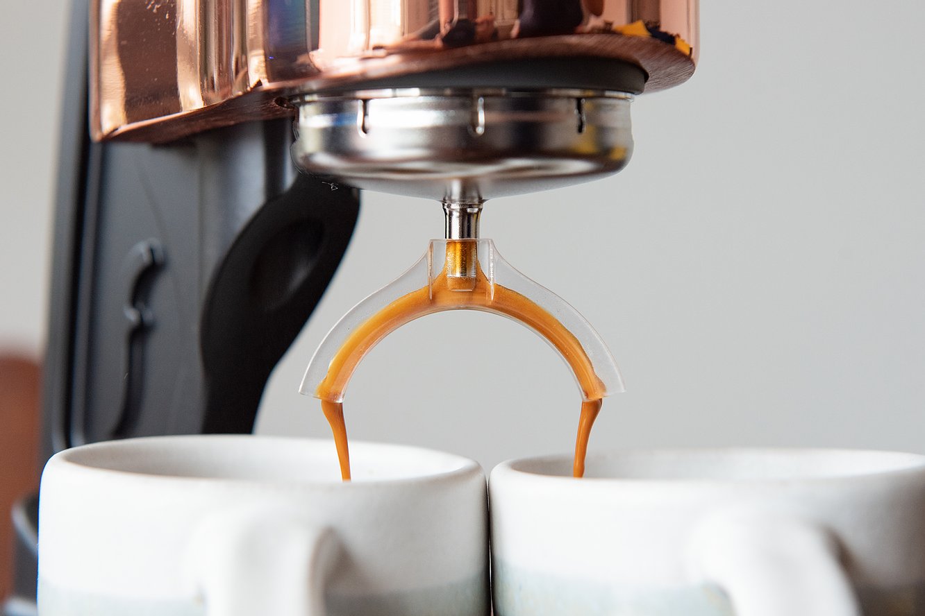 Split spout vă permite să preparați două cafele simultan.