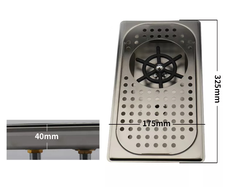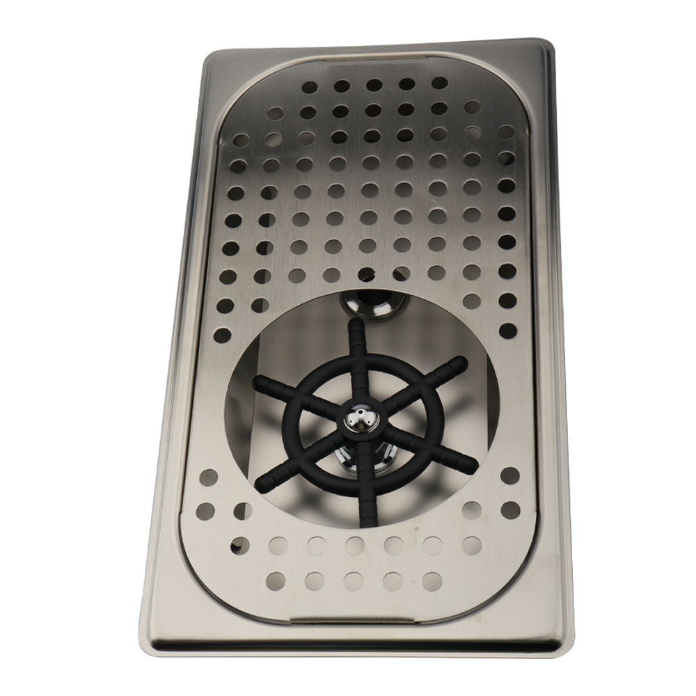 Clătire pentru pahare sau pahare echipate cu duză rotativă de înaltă presiune, cu eficiență ridicată de curățare. Tava de scurgere este inclusă. Potrivit pentru montare în blatul de lucru.