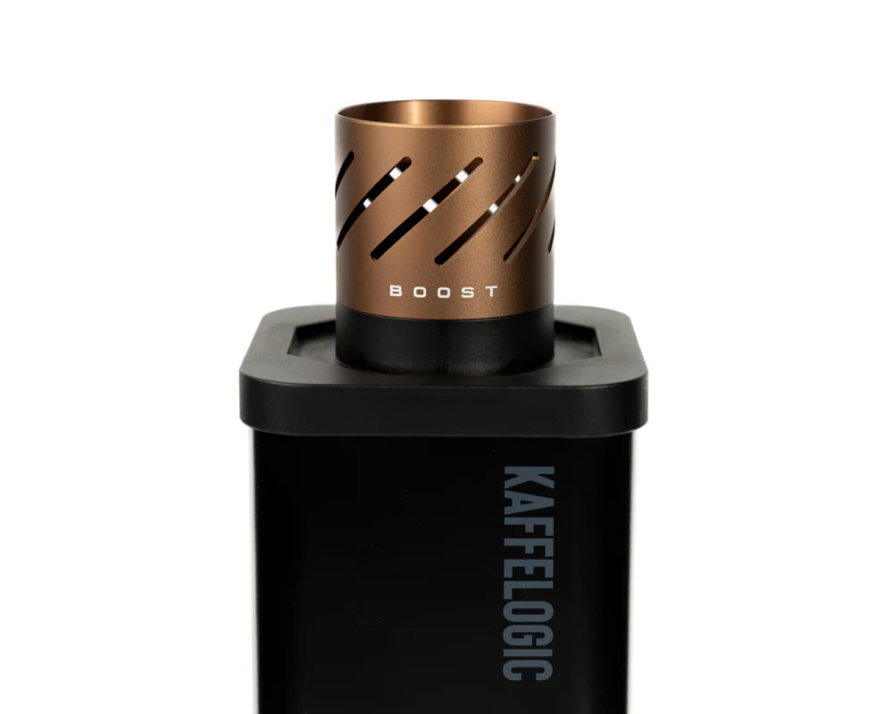 Acest set promoțional combină prăjitorul de cafea de top pentru acasă Kaffelogic Nano7 cu kitul de extindere Boost Kit. Boost Kit include două accesorii din aluminiu și activare software, care extind capacitatea prăjitorului Nano 7 la loturi de la 50 g până la 200 g. Sistemul ajustează automat profilele termice și fluxul de aer în funcție de cantitatea de cafea selectată.