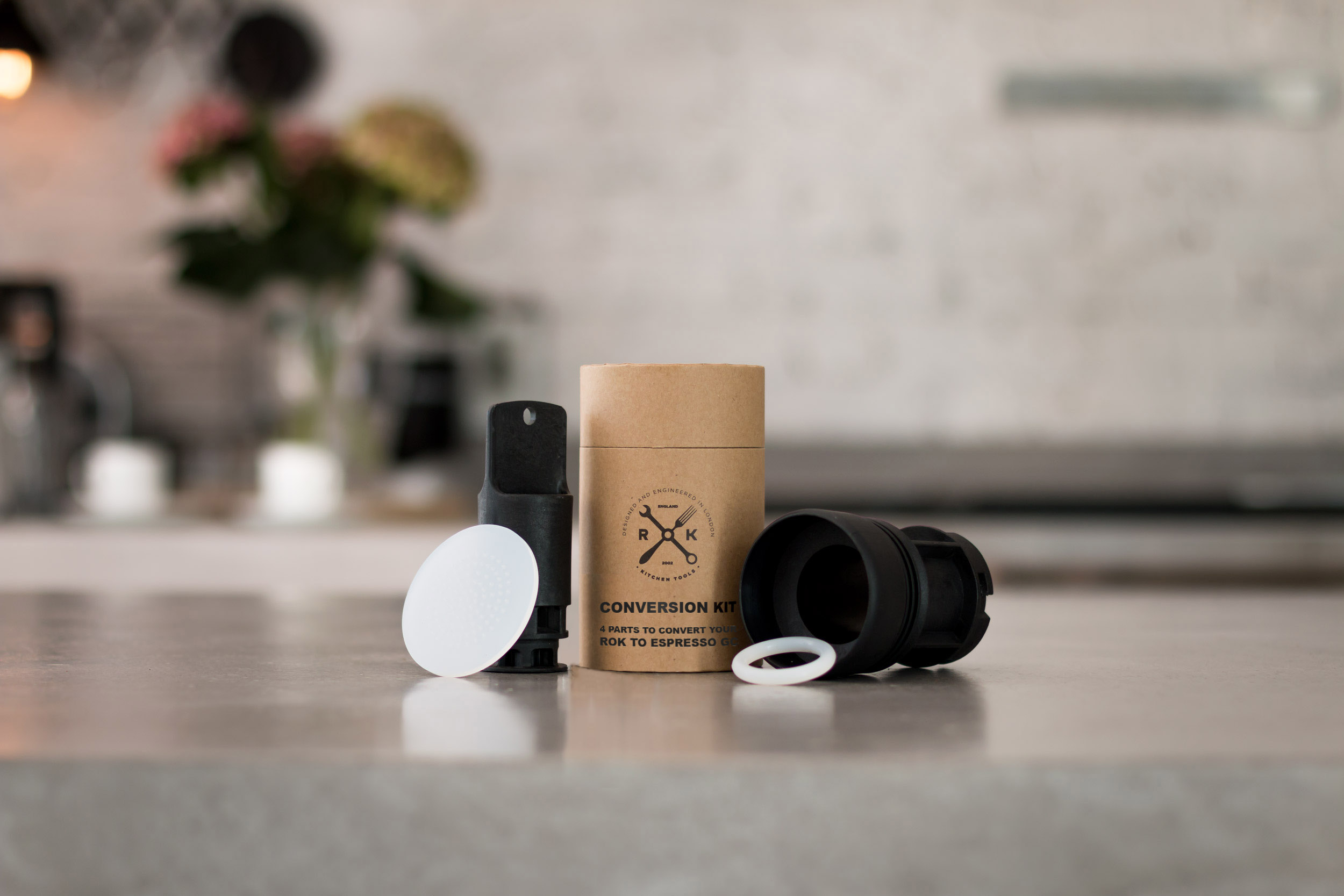 Kitul de conversie vă permite să modificați o versiune mai veche a aparatului de cafea ROK espresso în cea mai recentă versiune „GC”.