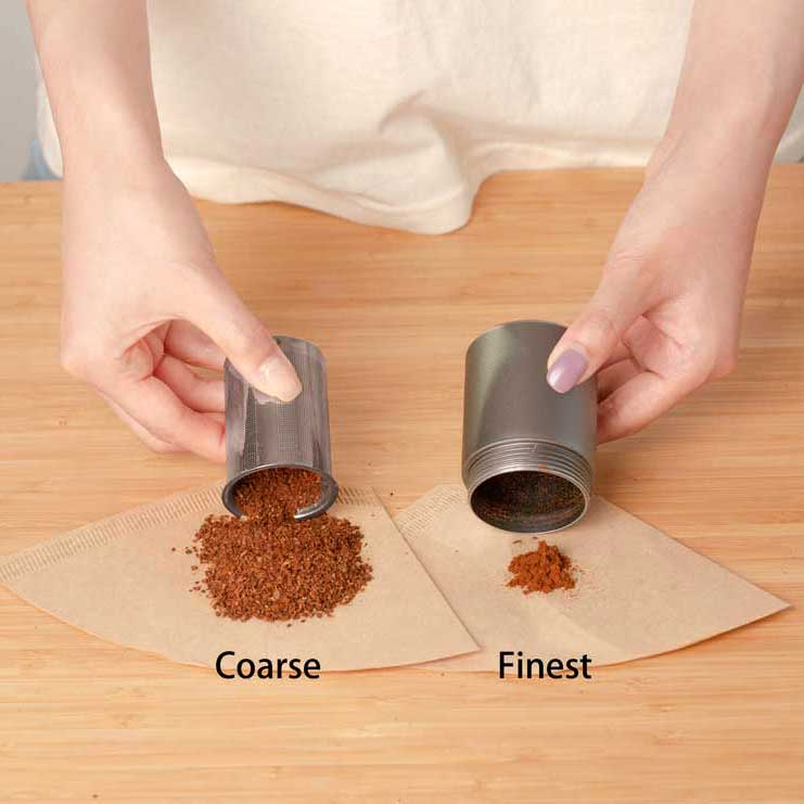 Filtru pentru cele mai mici particule - cafeaua măcinată cade în filtrul coșului; trebuie doar să agitați râșnița și cele mai mici particule de cafea sunt pur și simplu filtrate.