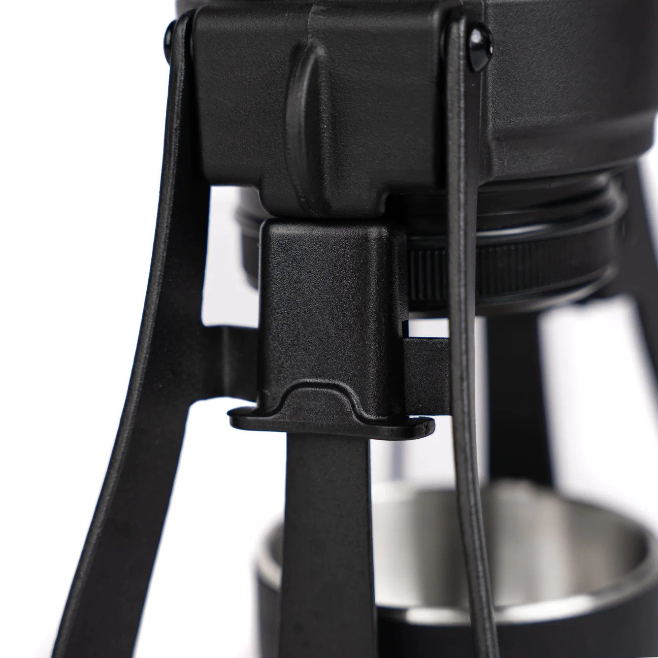 Construcție interesantă în forma unei nave spațiale cu picioare pliabile. Aparatul de cafea are o constructie foarte robustă și puteti prepara cafeaua pe orice suprafață. Conține și o ceașcă de cafea încorporată.