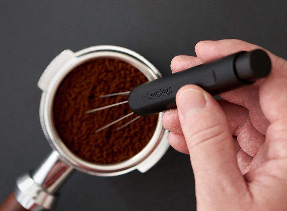 Distribuitorul de ac Subminimal Flick WDT Tool este utilizat pentru distribuirea uniformă a cafelei în portafiltru. Cu un singur clic, acele distribuitorului sunt scoase și retrase din nou cu o simplă mișcare a încheieturii mâinii.