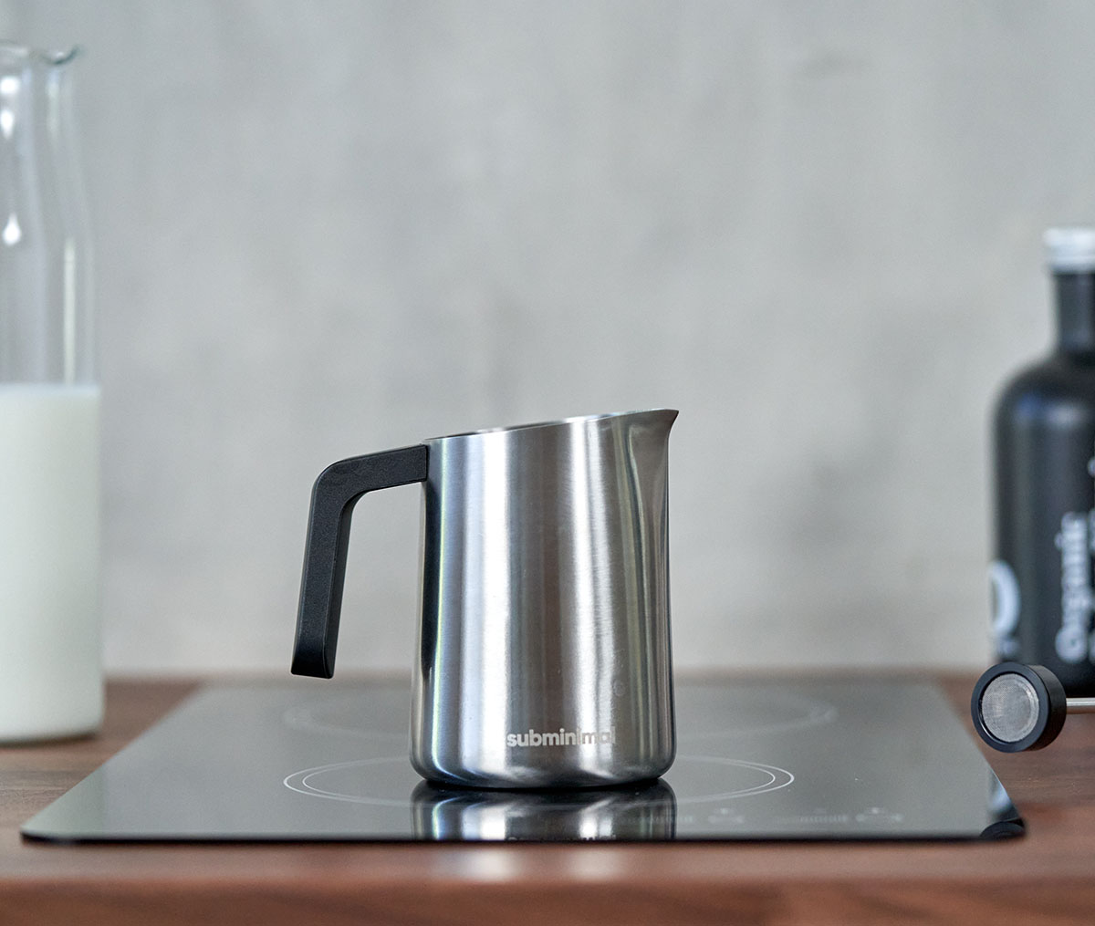 Subminimal FlowTip este un ulcior de lapte cu un design modern, stilat și elegant. Pentru a incalzi laptele la temperatura ideala (55 - 65°C), il puteti folosi direct pe plite pe gaz sau electrice (la inductie doar cu folosirea unui reductor/placa pentru inductie).