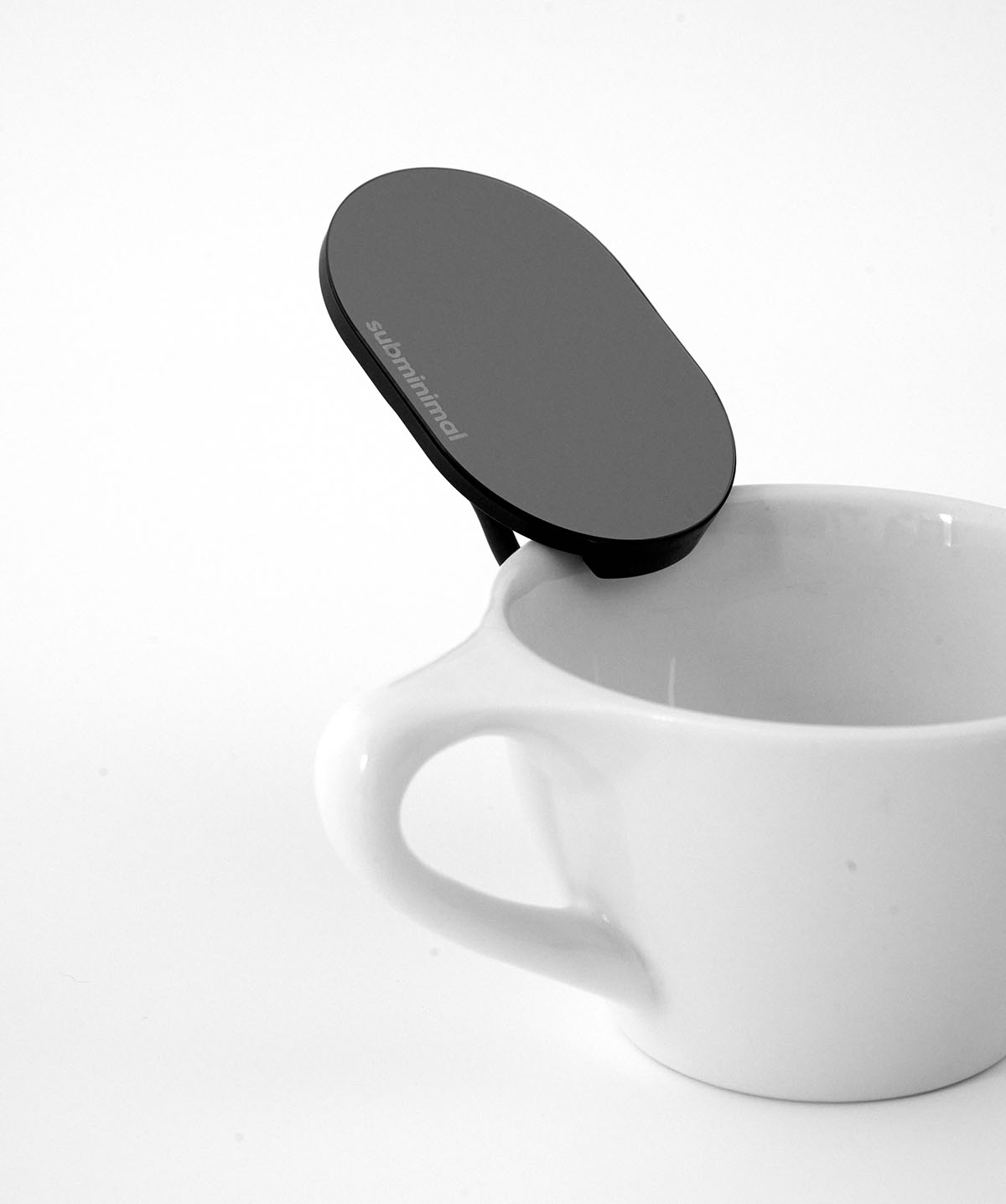 Subminimal UpShot mirror se fixează pur și simplu pe marginea ceștii, făcând-o utilizabilă cu orice aparat de cafea.