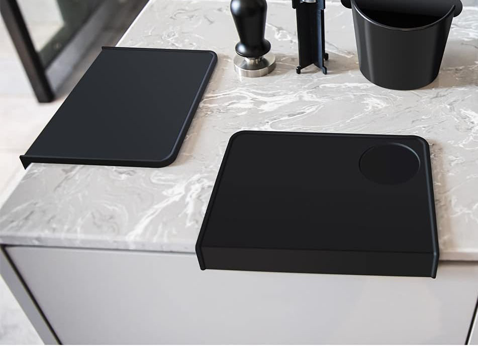 Suportul de silicon (tamping station) pentru tamper și mânerul 4Barista protejează perfect mânerul aparatului de cafea, precum și masa de lucru, în timp ce presați cafeaua în mâner. Pe suport își va găsi locul și tamperul cu diametru de max. 58 mm.