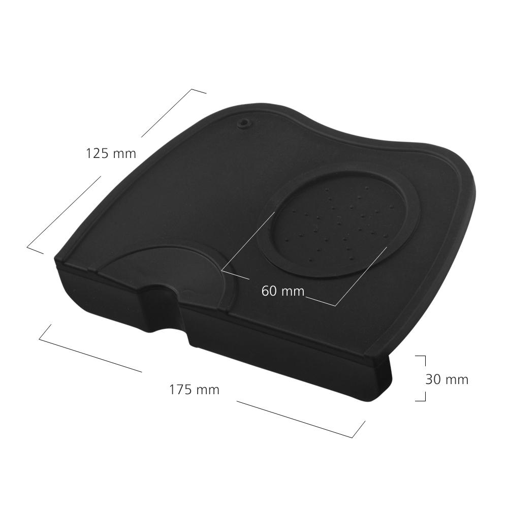 Suportul de silicon (tamping station) pentru tamper și mânerul 4Barista protejează perfect mânerul aparatului de cafea, precum și masa de lucru, în timp ce presați cafeaua în mâner. Pe suport își va găsi locul și tamperul cu diametru de max. 60 mm.