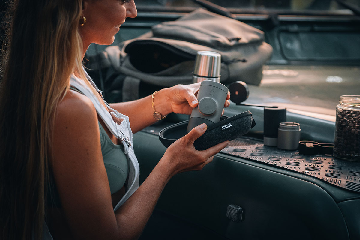 Cu dimensiunile de 60 x 71 x 125 mm, cafetiera de călătorie MiniPresso GR2 este suficient de mică pentru a încăpea într-un spate, rucsac sau chiar într-un buzunar din spate. Greutatea totală a fost redusă semnificativ la 285 g , păstrând în același timp robustețea și durabilitatea. Este, așadar, o alegere ideală pentru pasionații de aer liber care își doresc un tovarăș de călătorie compact și ușor de utilizat.