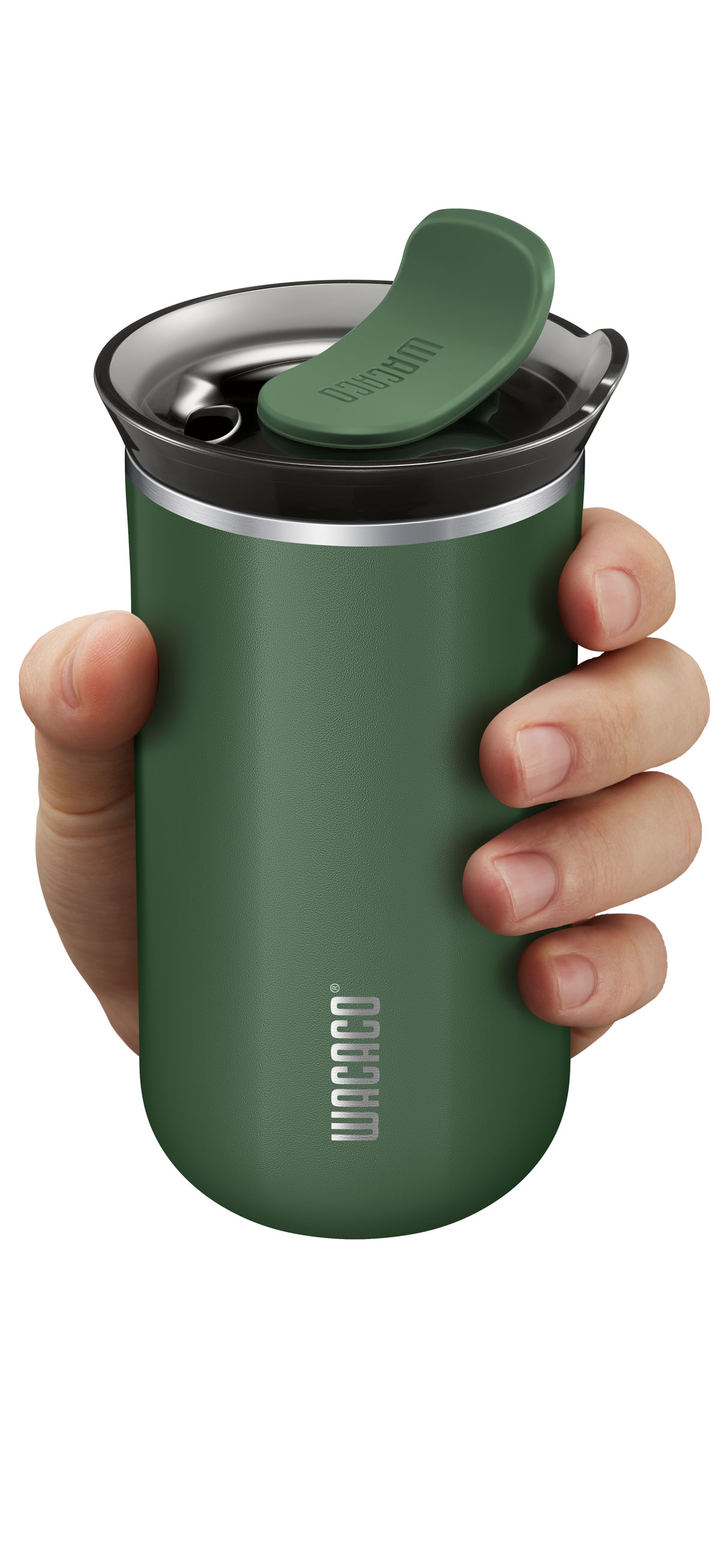 Cană termică Octaroma de la Wacaco. Volum: 300ml. Se potrivește majorității suporturilor pentru pahare auto. Păstrează băutura fierbinte timp de 5 ore.